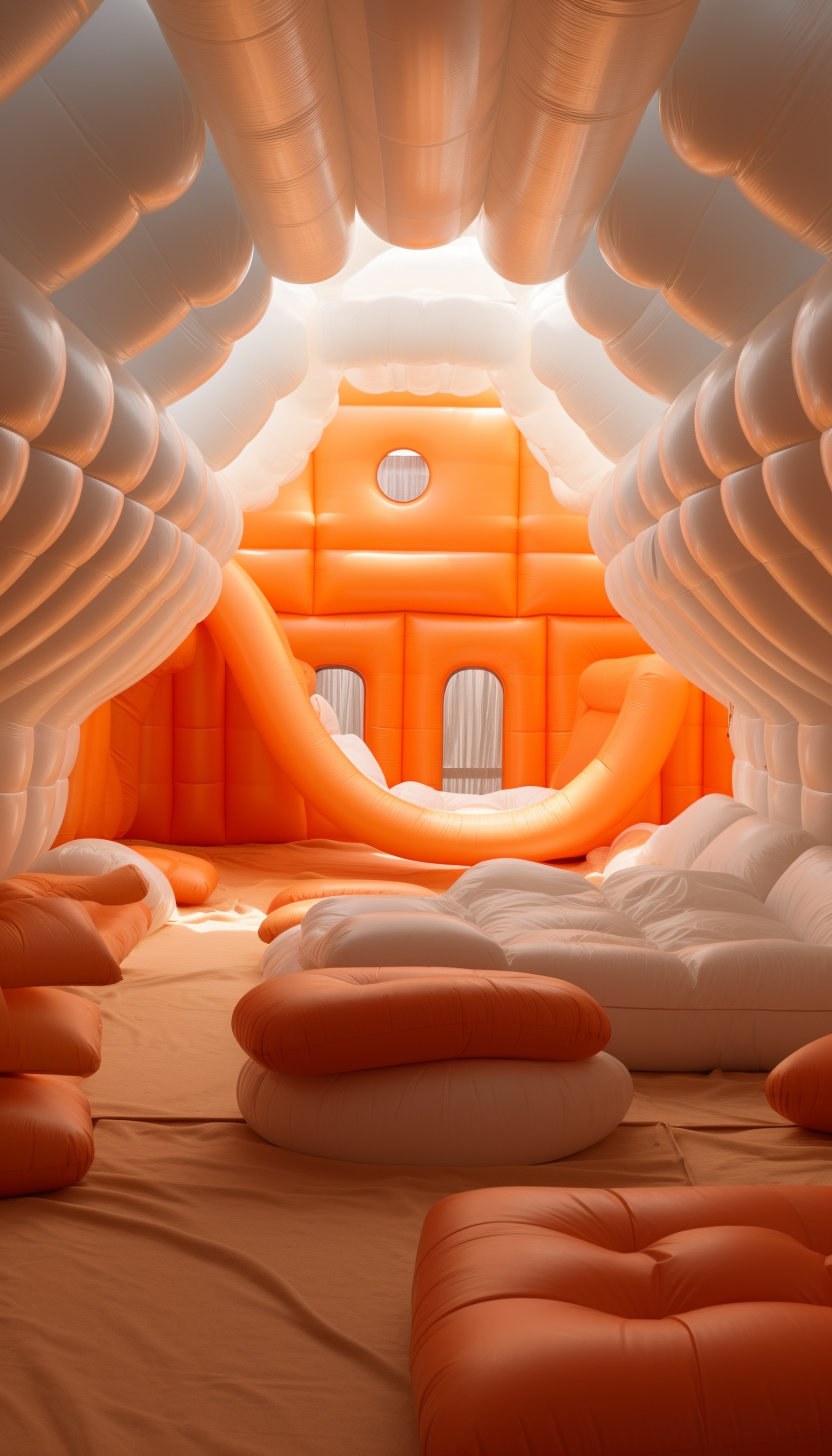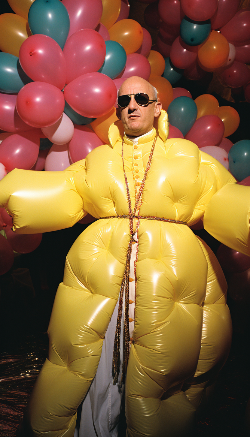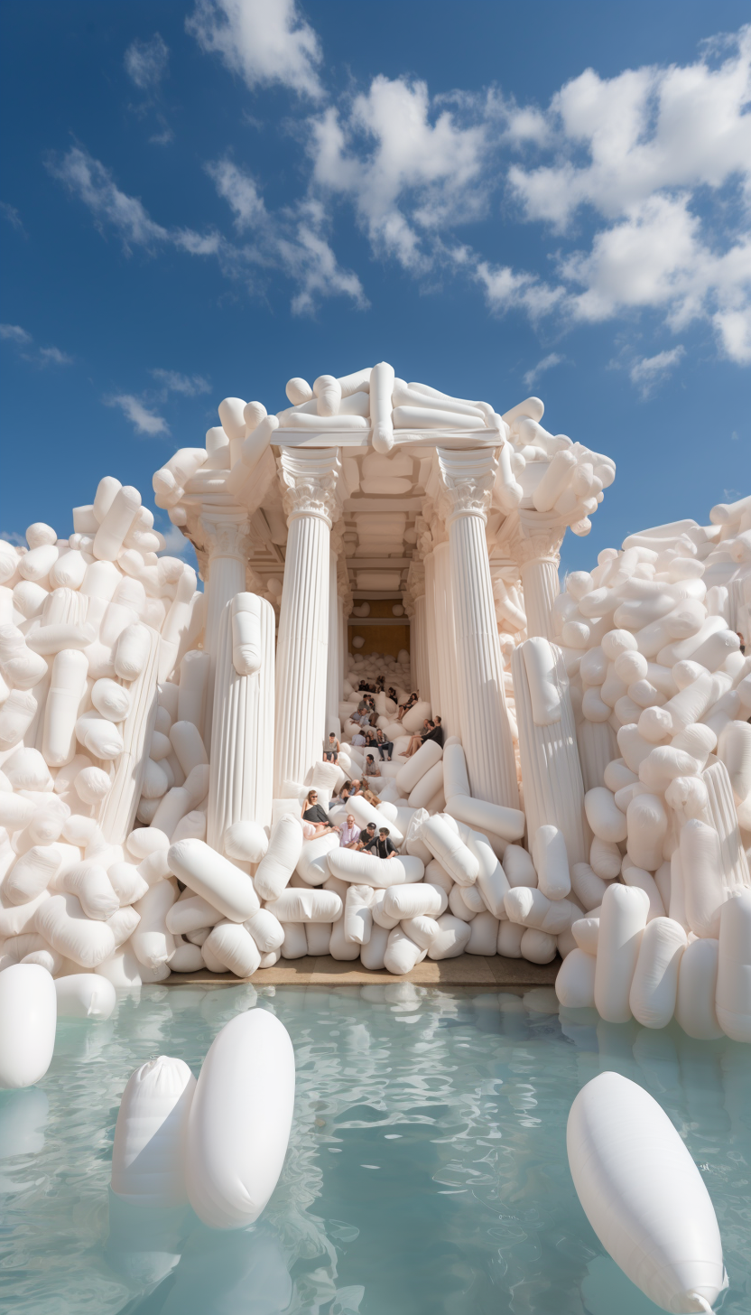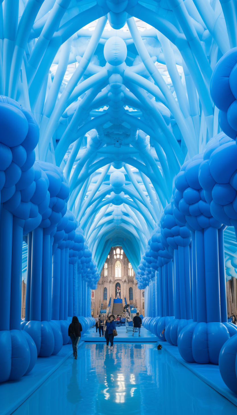 Fast Expos are a concept of exhibitions in a party format with express exhibition and sale of artworks that lasts only one night at Sala Siroco (Madrid). In mid-2023 I was presented with the opportunity to collaborate on this project with Sisual Studio to show artistic pieces generated with Artificial Intelligence (Midjourney + Runway). The common thread was the inflatable and the idea was to explore and play with the creation of impossible universes.