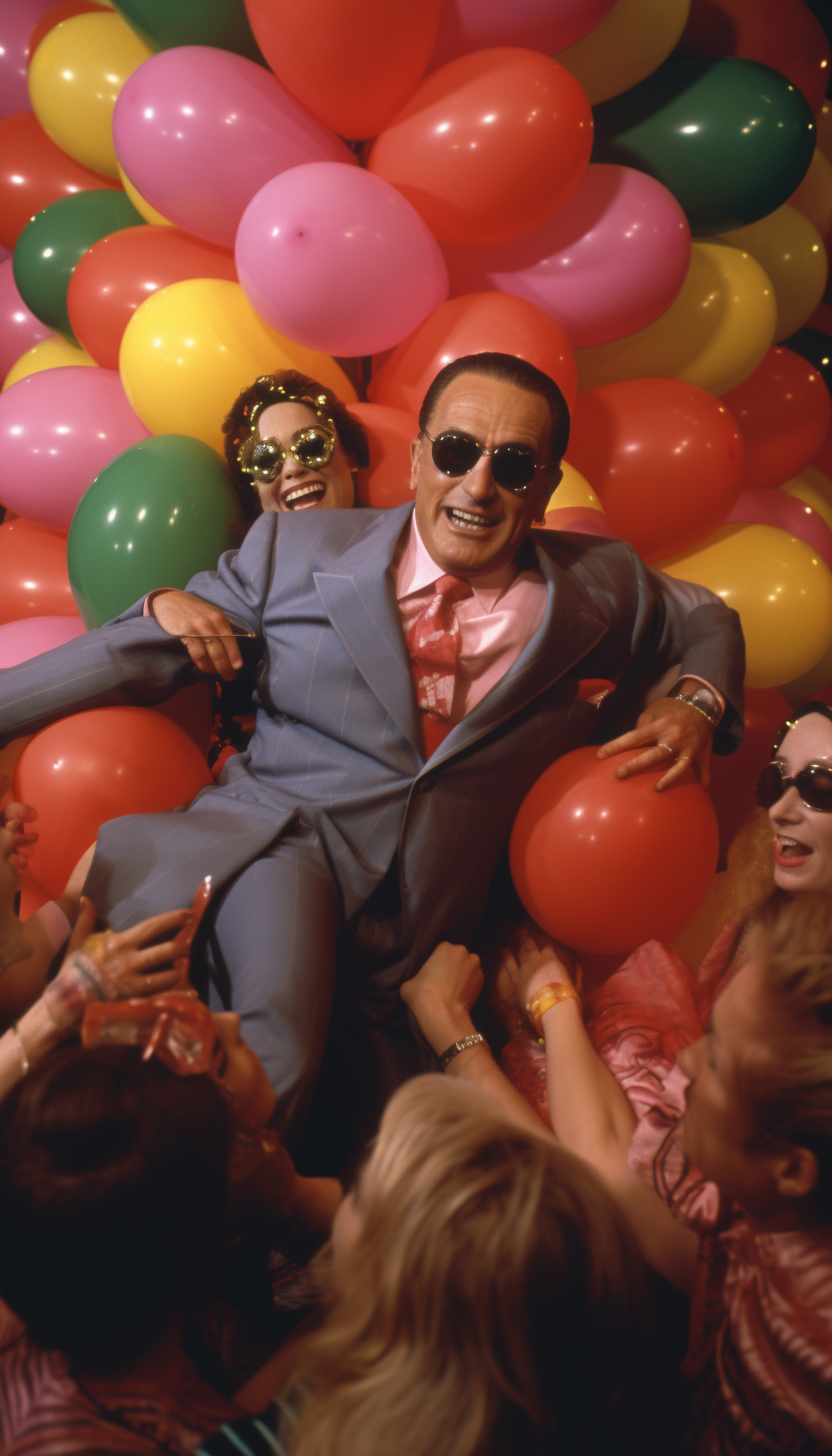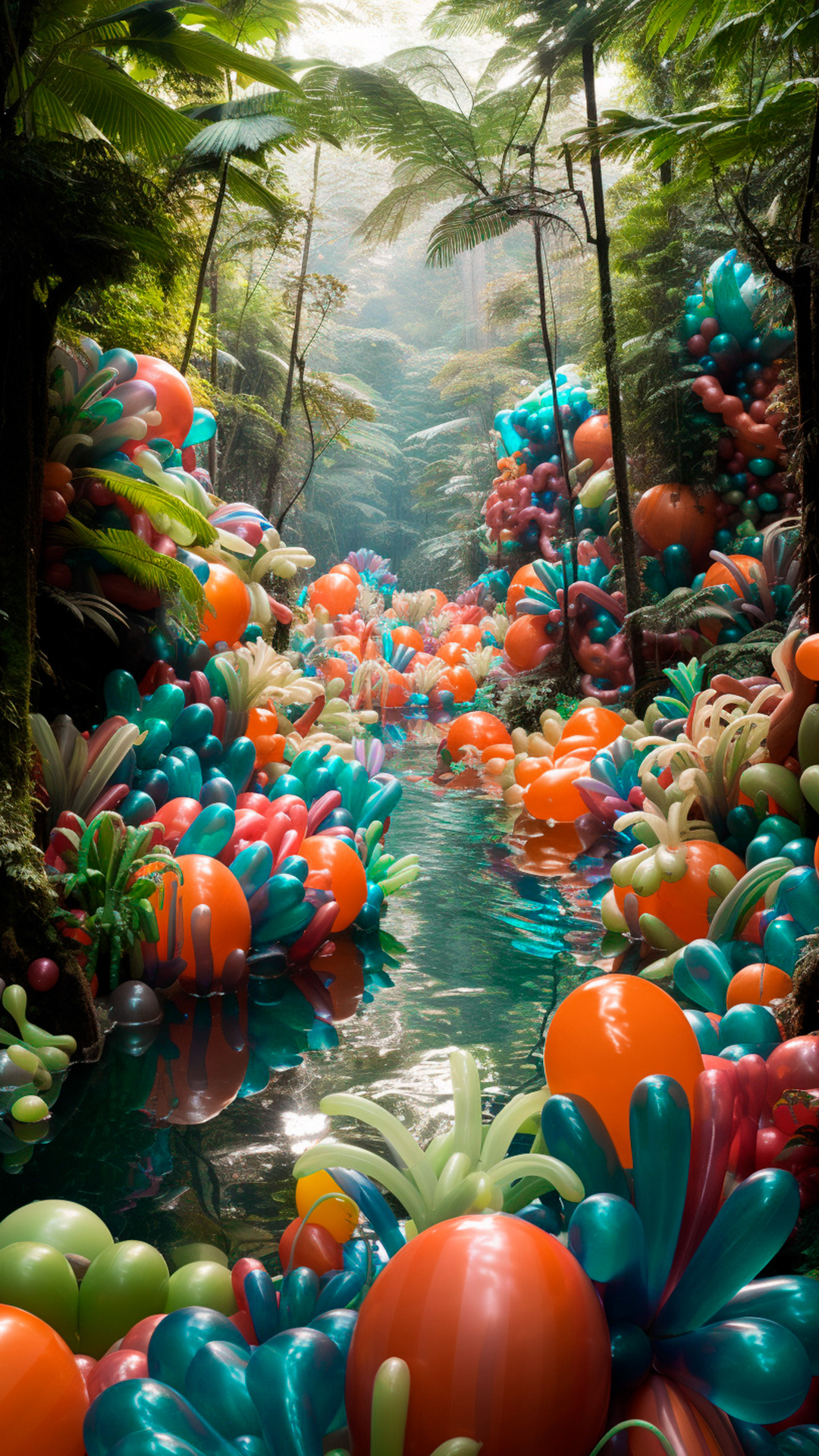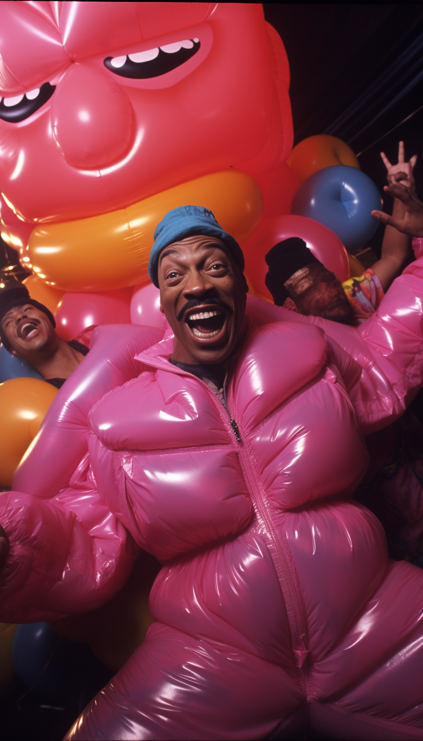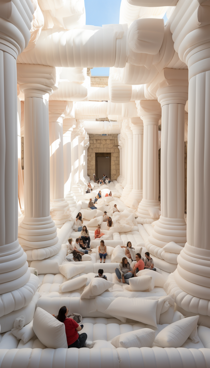 Fast Expos are a concept of exhibitions in a party format with express exhibition and sale of artworks that lasts only one night at Sala Siroco (Madrid). In mid-2023 I was presented with the opportunity to collaborate on this project with Sisual Studio to show artistic pieces generated with Artificial Intelligence (Midjourney + Runway). The common thread was the inflatable and the idea was to explore and play with the creation of impossible universes.